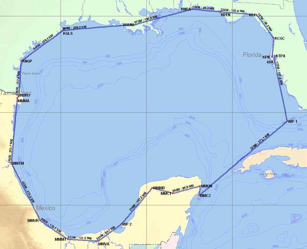 and landing fees) then follow the Gulf of Mexico coast line back to the
