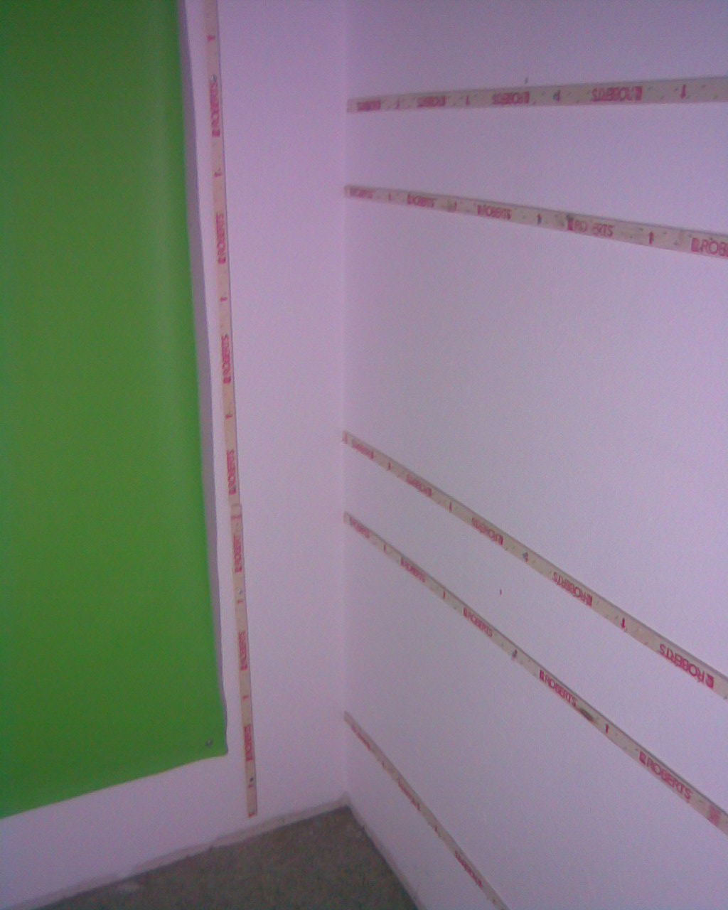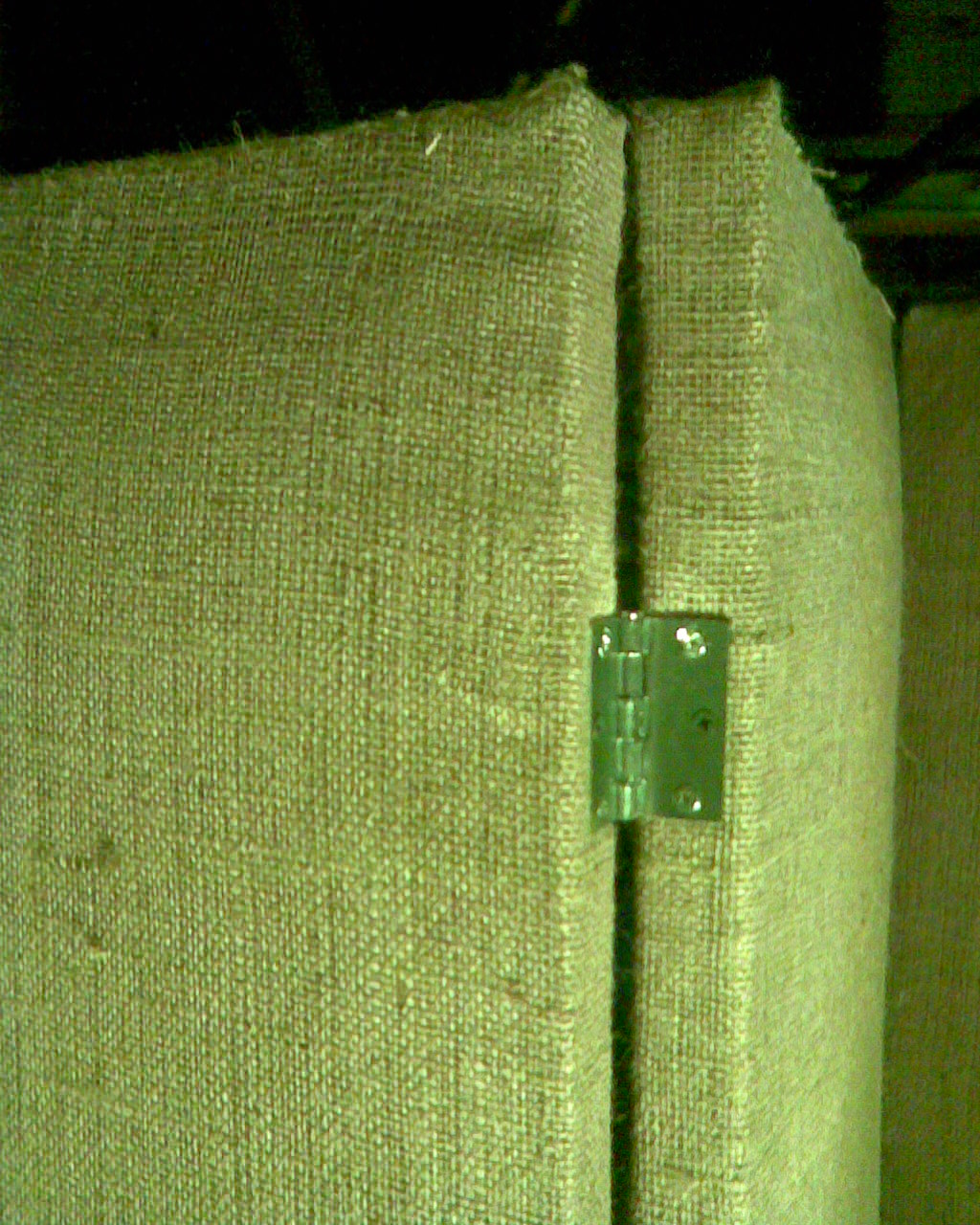 Studio Acoustics A single page could not do justice to the topic of studio acoustics. So this article does not attempt to teach the basics of studio acoustics nor why things are done the way they are. Audio is probably the most important part of a video. I believe that you could have the best script, the best talent, the best technical quality & method, or the best materials but if you have bad audio, it's all a waste. According to Videomaker magazine, "One thing that is absolute in video production: whether you're a hobbyist or a pro - the audience might accept weak video, but will not forgive poor audio." The Walls ![]() Not only is there noise of the building (airconditioning, appliances, etc), there's the street noise outside, the neighbor who is a cabinet maker. The list goes on. The space I selected had to be rehabilitated to not only block sounds from outside, but also the echo of the space. I embarked upon a three phase plan for good acoustics for my home video studio: wall foam (diffusion), room divider (absorption), and ceiling panels (absorption). ![]() The picture to the right illustrates the carpet tack strips I mounted to the wall so that the acoustic foam could be put on the wall temporarily (i.e. not glued to the wall). Carpet tack strips have directionality of the nails, so point the top of the foam tile nails up, and the bottom of the foam tile nails down. This allows you to put a little tension on the foam tile to keep it adhered to the wall. Cost of the carpet tack strips $22(box of 100), and the wall anchors/screws were $18. You'll notice in the picture above that the panels of acoustic foam are rectangles. If you want to get a nice pattern going, they have to be squares. So after long and hard searching the internet, and experimentation, I found the easiest way to cut acoustic foam is an electric kitchen knife. I went down to the local thrift store and found one that had already served a long life of cutting the annual Thanksgiving turkey. For $5, I was cutting the foam to shape like a professional. The Room Divider ![]() The panels of the room divider were constructed with 2x2 lumber with each of the four panels measuring 6 feet tall by 19 inch when finished. Inside the the center of the frame, I stapled standard fiberglass home insultation. I covered the whole panel with 2 layers of burlap fabric I bought in bulk from a fabric store. Each panel used about 1.5 yards of fabric at $1 a yard. The fabric was secured to the wood frame with a staple gun at the edges. Each panel was about $2.50 of lumber + $1.50 of fabric + $2 fiberglass insulation. To construct four panels cost me $20 -- much cheaper and more effective than anything I could find on craigslist. ![]() On the other side of this room divider is a desk with the video editing system and audio equipment on it. All of that equipment generates a little noise which is now quieted by this room divider and can't be heard on tape. ![]() The next problem I came across was the ceiling of my studio. When I started listening to the audio created in this room, I had definitely not isolated all of the sound reflection. The floor was carpeted, the walls were covered in foam, and other absorption materials, but the ceiling was still unfinished. An Acoustic Ceiling Most TV studios have very high ceilings with lots of equipment suspended 15-20 feet up. This wasn't the case in my studio. I had to deal with typical residential construction. This was starting to become painful as the best scenario I could imagine now was a suspended ceiling which now limited the height of the studio. I have seen special acoustic panels in the suspended ceilings of audio studios. I discovered the problem with this was the cost. My budget didn't allow for $40 drop ceiling panels. I was in the $1-2 range as I had to put in 24 ceiling tiles. In the acoustics world, the stuff everyone talks about is Owens 703 or 705 panels. Well I didn't find that at my local home depot, but I did find the typical 2' x 4' drop ceiling panels.