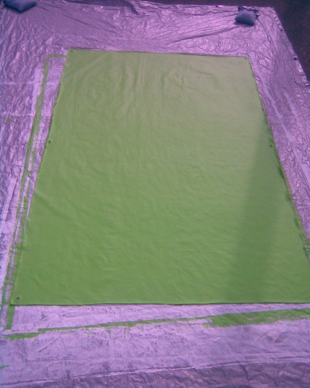 Green Screen (aka Backdrops, Part II) ![]() ![]() The biggest challenge when setting up a green screen is even lighting. You have to avoid any chance of a shadow because its a darker color to the camera and might not register. You must have as narrow a color range as possible in chroma keying. To the right, you can see those shadows and how they appear to be darker shades of green. It's something that must be avoided. Professional green screens have special lights called kino flo lights which give the green color a bump so as to remove any of the other parts of the visual spectrum. ![]() Then it was on to creating the backdrop. I had to create a green wall also but not do any semi-permanent damage that a painted wall might offer. So I repeated the same trick from the Backdrops page and purchased a 6 foot by 9 foot canvas drop cloth from home depot. I bought the heaviest fabric weight they had available. Cost of the canvas drop cloth, $10. ![]() The whole reason I've been using canvas for the backdrops is because it's a relatively smooth surface which can be manipulated to produce the results I'm looking for. I couldn't use the textured wall as a green screen surface because it wasn't perfectly smooth. Next, it's time to paint the ready canvas it's final color.