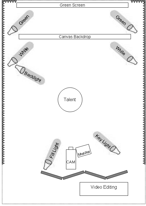 ![]() To review from the first article in the series, the graphic to the right diagrams the electrical usage. There are three areas of electrical need: 1. Lighting - We need some outlets for the pair of green lights. We need some outlets for the pair of white lights. We need some outlets for the talent lighting. 2. Camera - We need some outlets for the camera, teleprompter, studio monitor, and camera hard drive. 3. Video Editing/Post - We need some outlets for the computer, external computer harddrive, studio monitors (2). It would be nice if all the computer stuff was on an Uninterruptible Power Supply to protect this sensitive equipment from electrical power quality problems (surges, brown/black-outs). The primary consideration here is now distribution. I decided that I'd like to be able to control the different types of lighting from a central point. For example a switch for the green, a switch for the white, a switch for the talent. I went to home depot for inspiration. This is what I came up with. ![]() Basically it's an extension cord with switches at the beginning of the run which control the corresponding outlets all along the run. This would allow me to snake electric up along the left wall, against the back wall (under the green screen), and then down along the right wall. The green switch would control the green outlets which have the green screen lights plugged in there. The white switch would control the white outlets which have the white screen lights plugged in there. The red switch would control the red outlets which would have all the talent lighting (backlight, fill, and key lights). The blue switch is extra in case something else pops up that I didn't think of. The shopping list for the electrical consists of: