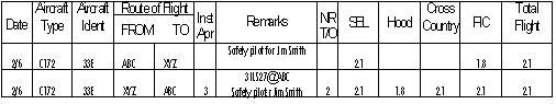One of the best training experiences you can get is to share time with another pilot. It's a great way to build your flight time while sharing the costs with another pilot. Generally, whoever is sitting in the left seat is paying for the flight time on that leg. Scenario: Jim & Ted are going on a cross country from ABC to XYZ. Jim will fly the first leg in the left seat while Ted is the safety pilot. Ted will fly the return leg in the left seat while Jim is the safety pilot. Here's a look at Ted's logbook. The first line represents Ted sitting in the right seat for